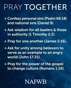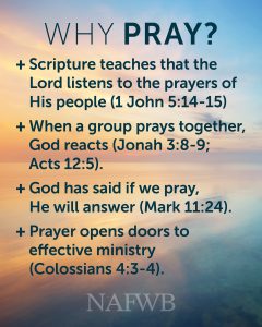 Make plans now to take part in the NAFWB National Day of Prayer, Tuesday, November 4.
